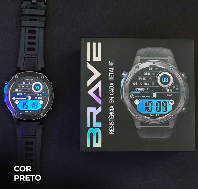 O WEARZONE BRAVE é muito mais que um acessório: é um companheiro fiel para quem exige o melhor em tecnologia. Com seu visual imponente e funcionalidades avançadas, ele atende desde atletas a profissionais que precisam de um relógio inteligente confiável.